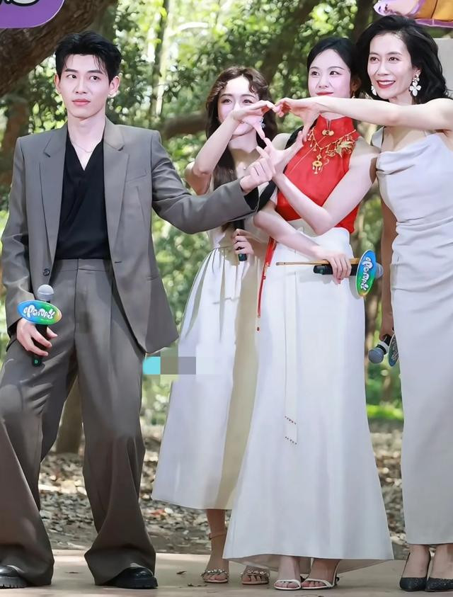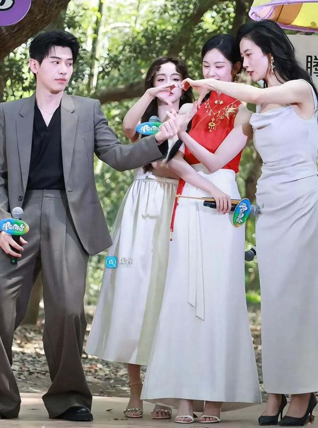 为了配合她们几位女生比心的高度,辛云来都快要半蹲了,三位美女比了个大爱心,只剩自己的辛云来手指比心,实惨了,哈哈!